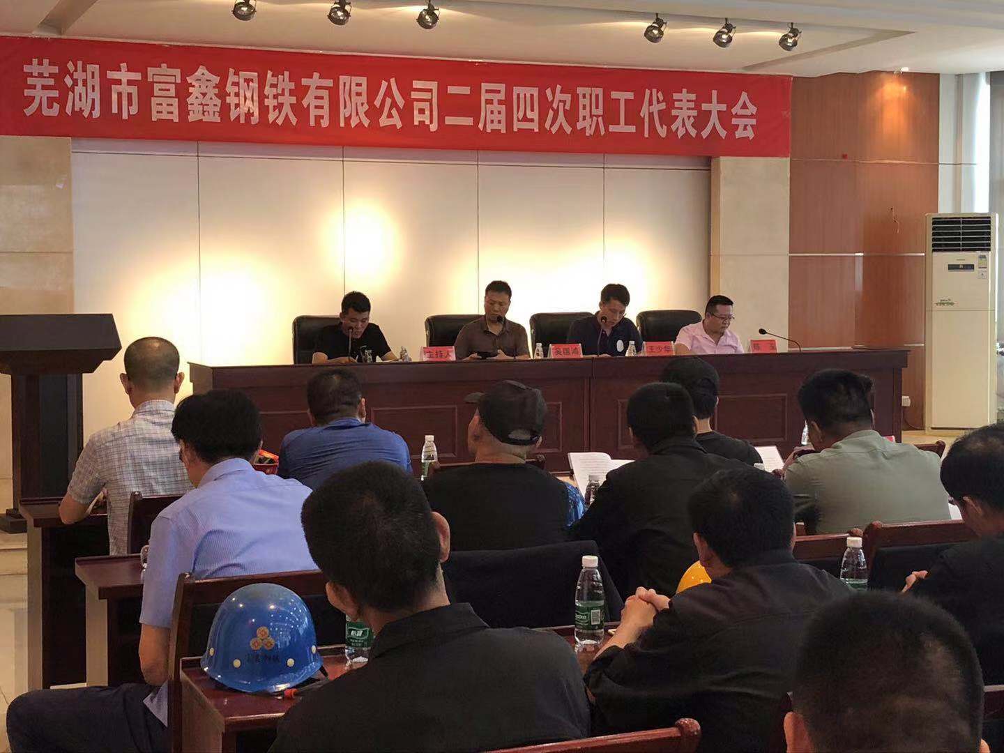 2019年8月6日上午9時(shí)蕪湖市富鑫鋼鐵有限公司第二屆第四次職工代表大會在雄壯的國歌聲...